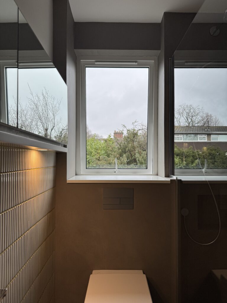The continuous application across walls, floors, and shower areas enhances the sense of cohesion while providing a durable, waterproof surface ideal for everyday use. Paired with clean-lined fittings, frameless glazing, and integrated details, the microcement finish delivers a balanced combination of practicality and understated elegance.
