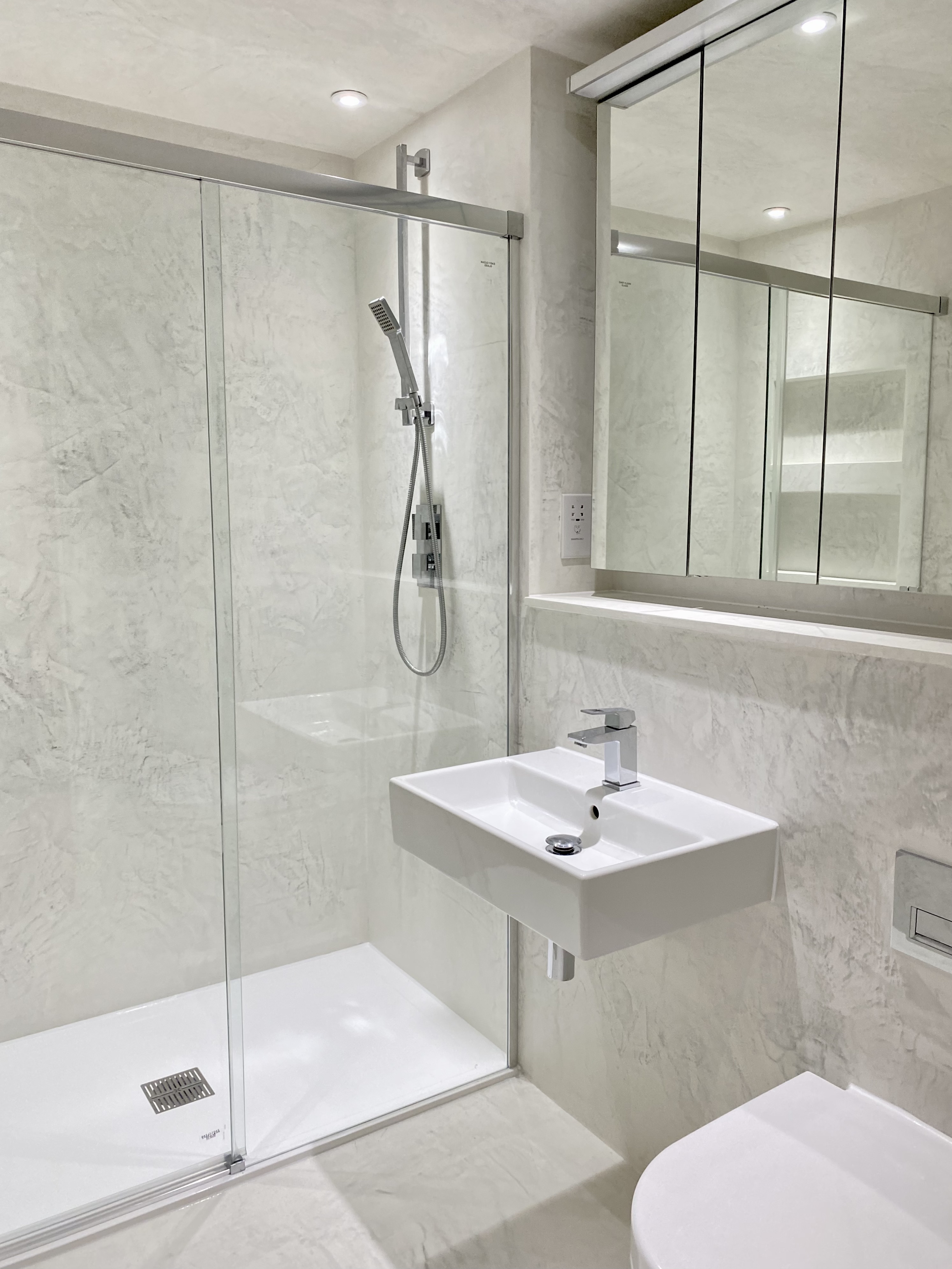 Microcement – Bathrooms Get A Quote More Projects in this category Explore our latest achievements and innovations in our Recent Projects Showcase, where we highlight our most cutting-edge work. Bathroom Bathroom in Marmorino Fine Bathroom in Marmorino Fine Marmorino Fine/ Tadelakt – Bathroom Get a Free Quote Notice: JavaScript is required for this content. Frequently Asked Questions Is it necessary to schedule an appointment to visit your showroom? Yes, you need to schedule an appointment to visit our showroom. Please contact us to arrange your visit. Can I see all available colours and finishes in your showroom? Yes, you can. We also provide guidance on the best product for your project. Do you provide samples free of charge? Yes, we do. We provide small samples (10×15 cm) free of charge, that can either be sent to you by post or collected from our showroom. Do you sell materials? We only undertake supply/install projects. For material supply, please contact our supplier Impera Italia. How long does it take to receive a quotation from you? We can provide you with an accurate quote within 48 hours. Do you conduct surveys for projects, and if so, when? Yes, once your order has been placed, surveys are then typically conducted 1-2 weeks prior to the start of the project.