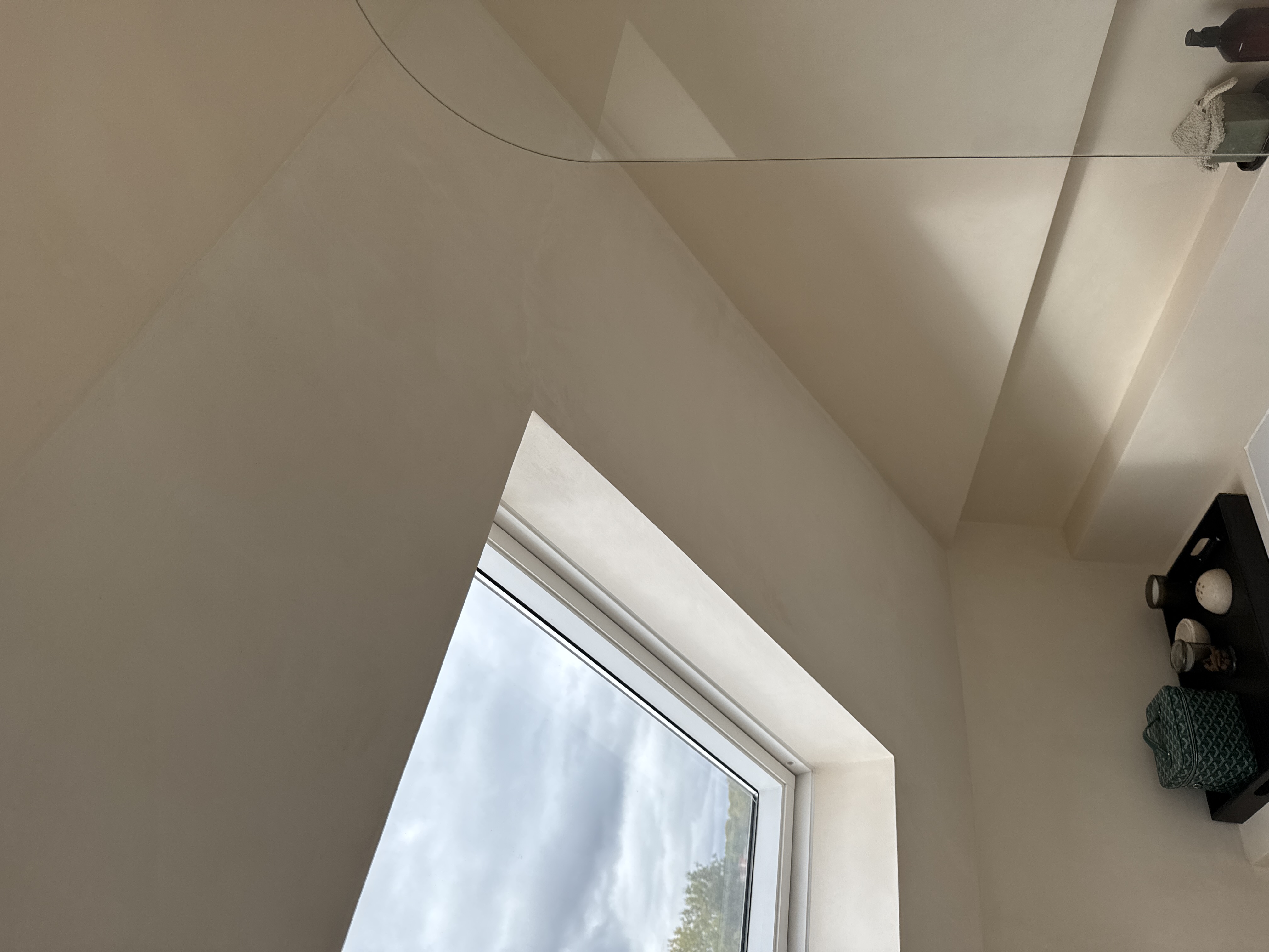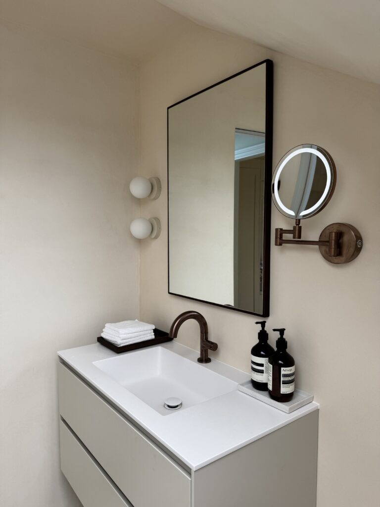 Location: Loft bathroom – walls, bath surround, and vanity area
